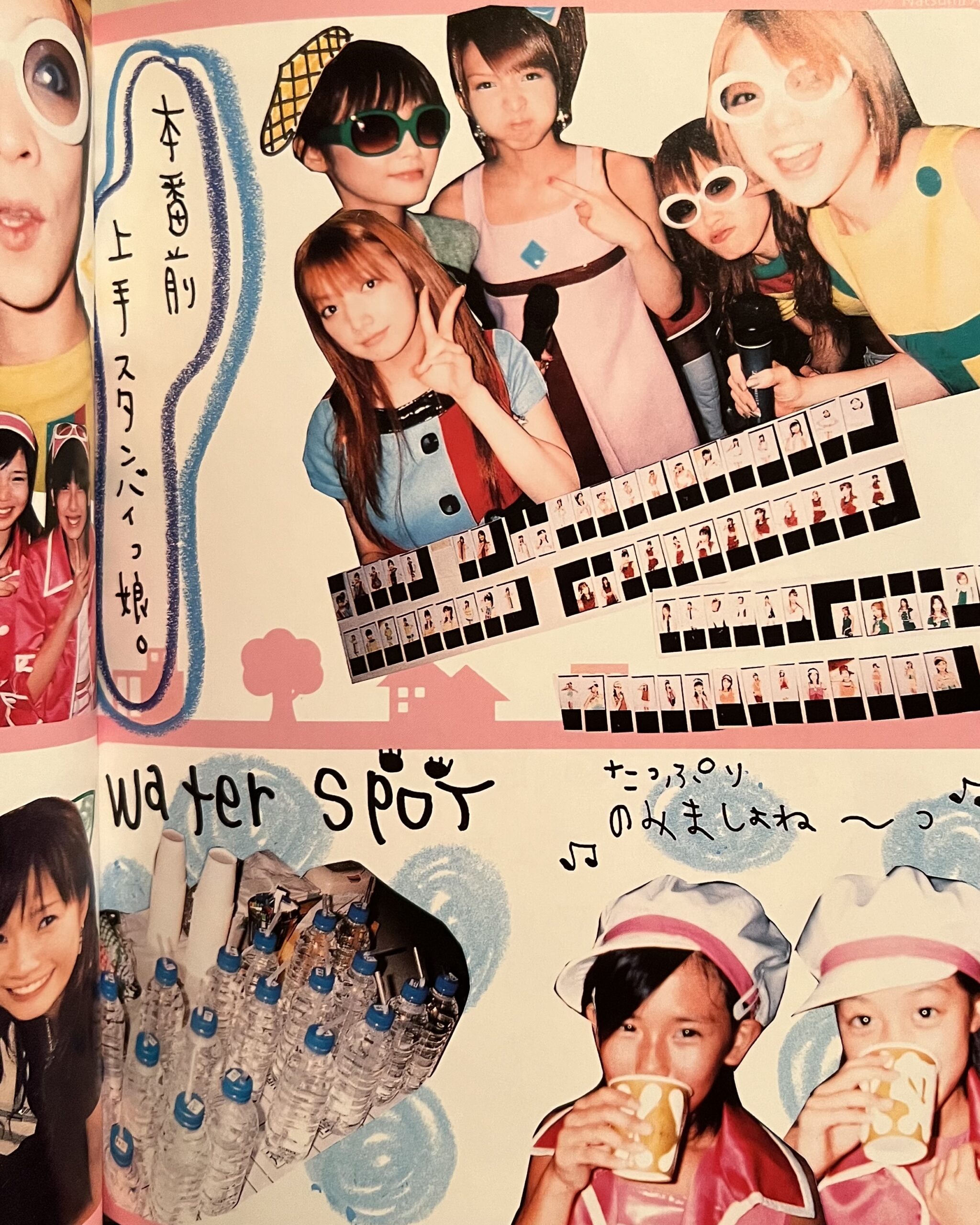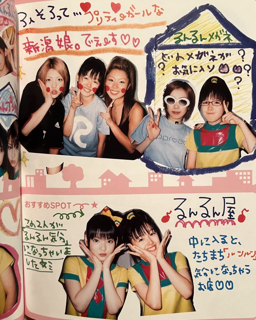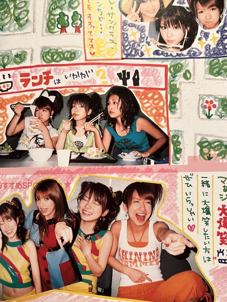 The colorful outfits, playful poses, and handwritten elements perfectly represent early 2000s Japanese trends.