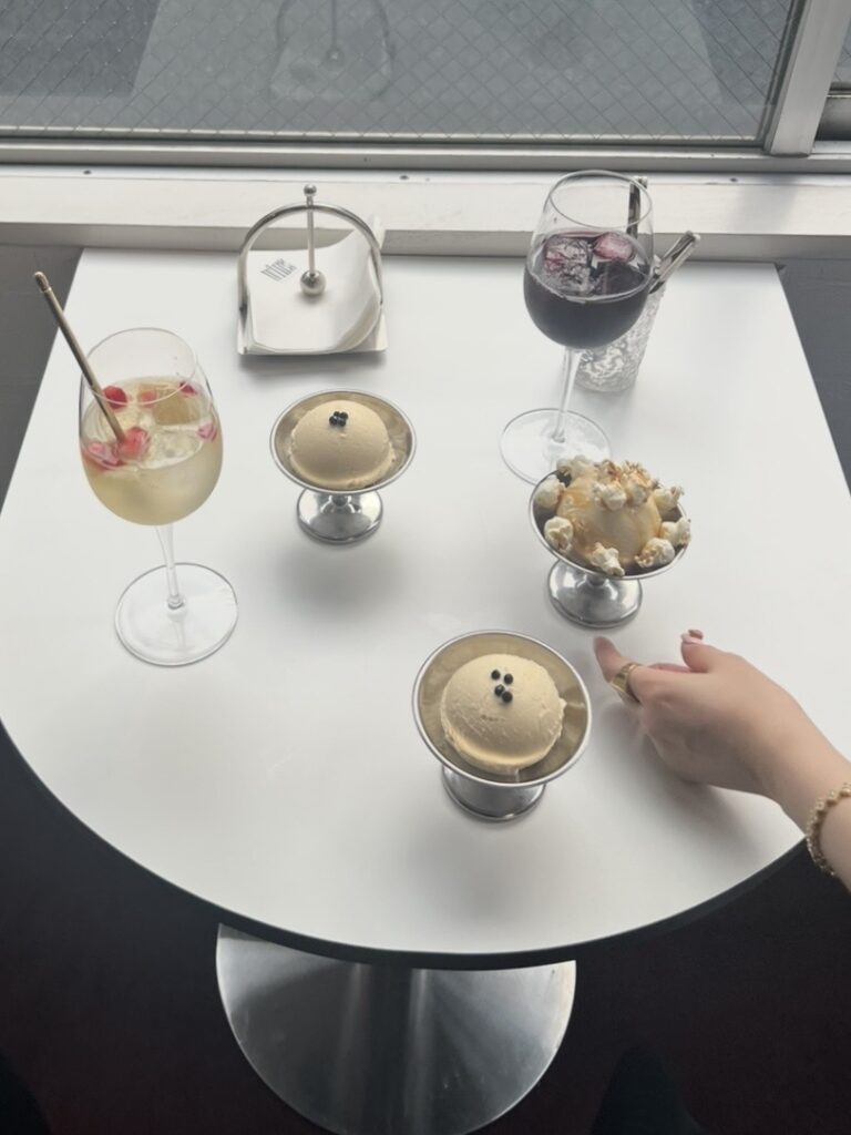 What makes it special is the combination of ice cream and wine. It might sound simple, but the balance of flavors feels surprisingly refined. Sweet, creamy desserts paired with light or rich wine create a small but memorable experience.